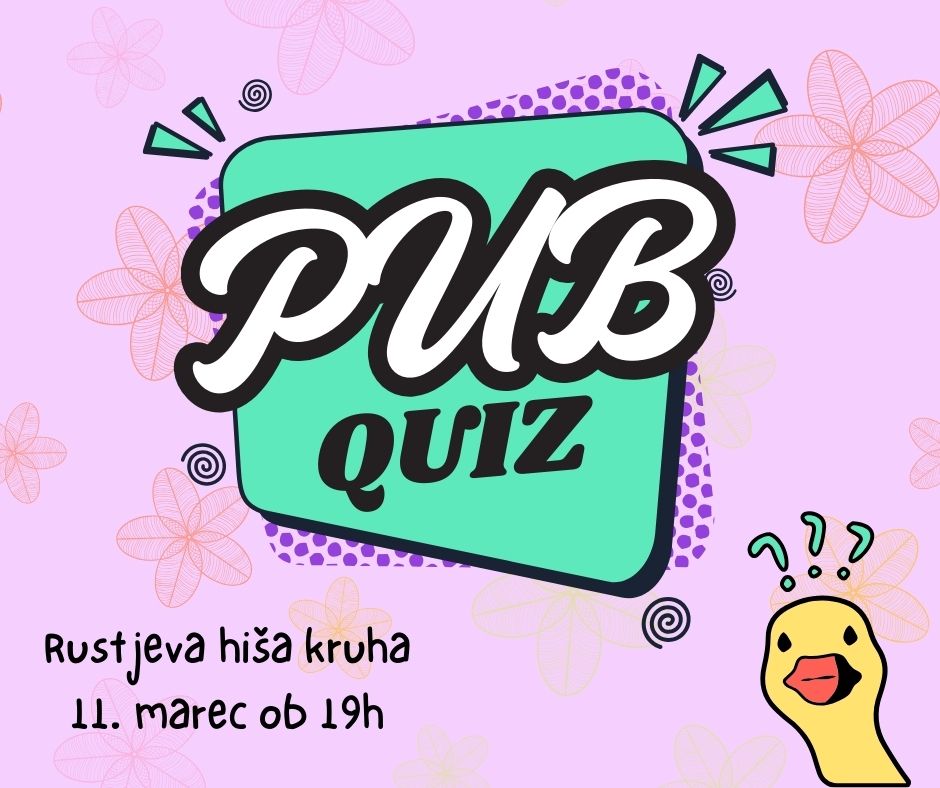 Vabljeni na Pub Quiz v Rustjevo hišo kruha! Tematika tokratnega kviza bo ... pomlad. Vprašanja bo postavljal Jure, kviz mojster, ki že nekaj let prireja kvize v ljubljanskih lokalih. Svojo ekipo lahko prijaviš na prostordozivetij@rustjevahisa.si ali osebno v Rustjevi hiši kruha. V ekipi ste lahko največ štirje. Prijavnina znaša 5 eur/osebo, vanjo pa je vključen tudi prigrizek, […]